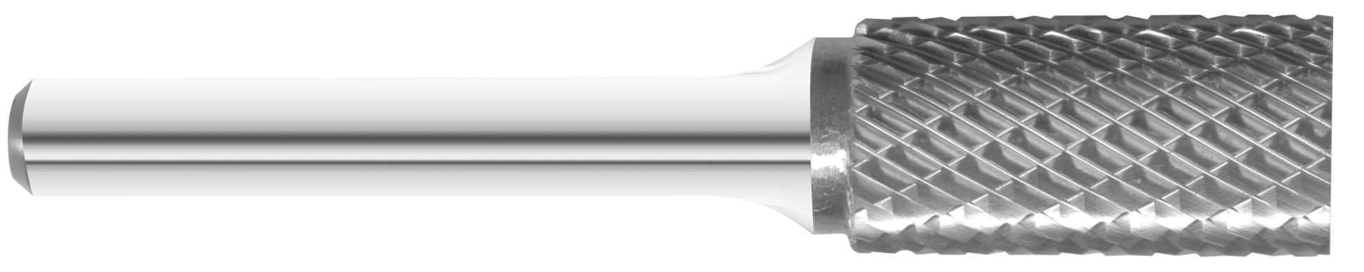 USA Made KnKut Carbide Burrs (sometimes called Rotary Files) are rotary cutting tools commonly used in removing burrs from castings. The double cut allows for rapid stock removal in harder materials. The addition of the left-hand flutes reduces the pulling action, allowing better operator control. It reduces the size of the chips and can be used at slower than normal speeds.